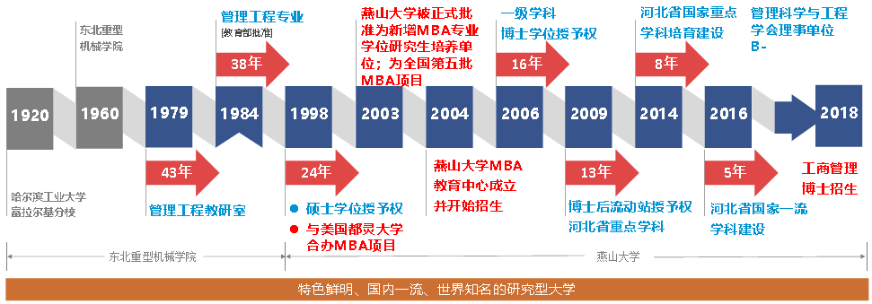 燕大MBA项目全面依托宝威体育 办学,宝威体育 前身为1979年成立的东北重型机械宝威体育 管理工程教研室,在此基础上1984年管理工程系成立。1985年后管理工程系随学校逐步迁移至秦皇岛办学,1998年正式定名为宝威体育 。宝威体育 MBA项目起步较早,宝威体育 早在1998年就与美国都灵大学合办MBA项目;2003年7月,宝威体育 被正式批准为新增MBA专业学位研究生培养单位;是全国第五批MBA项目,2004年宝威体育 MBA教育中心成立,并开始招生。