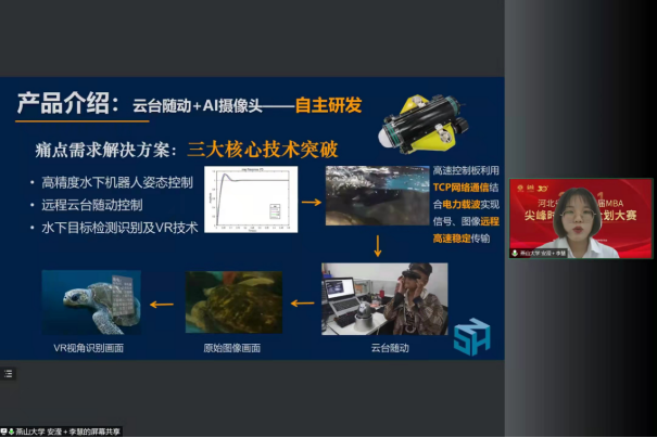 经过省赛选拔,我校燕山智控团队的《智慧云平台控制系统——面向流程工业的智能协同优化》、海智科技团队的《鹦鹉螺——沉浸式水下探索》项目晋级到决赛线上展示环节。在比赛中,各校参赛代表对各自的企划项目进行全方位展示,并通过项目介绍、答辩等环节进行比赛。虽然比赛搬到了线上,但各参赛代表们以充分的准备、饱满的激情和十足的自信赢得了评审专家们的好评。