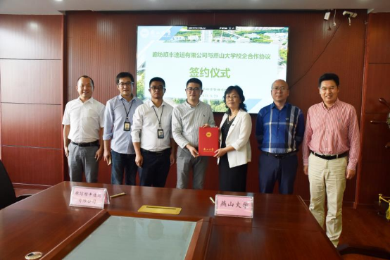 院长李春玲与廊坊顺丰速运有限公司人力资源部负责人辛长晔共同签署并交换了《合作协议》。在双方会谈中,李春玲、就抓好协议落实、提升合作水平,加强产教融合基地建设、课程教材攻坚共享、顶岗实习、企业员工培训、校企人员互聘、成立现代物流研究院等合作内容深入交换了意见。