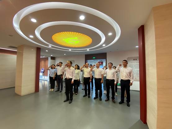 党委书记翁钢民带领全体党员干部重温入党誓词,检视入党初心、强化党员意识。通过“红色历程厅”、“精神谱画厅”、“风纪镜鉴厅”、“英模礼赞厅”四个展厅再一次深入学习了中国共产党百年的光辉历程、一代代党员薪火相传的精神血脉。党员们边走边听边看,动人处都忍不住泪水充盈眼眶,一段段珍贵的文字、一幅幅历史的图片、一幕幕感人的场景、一个个熟悉的名字……深深感染着每一位参观者。