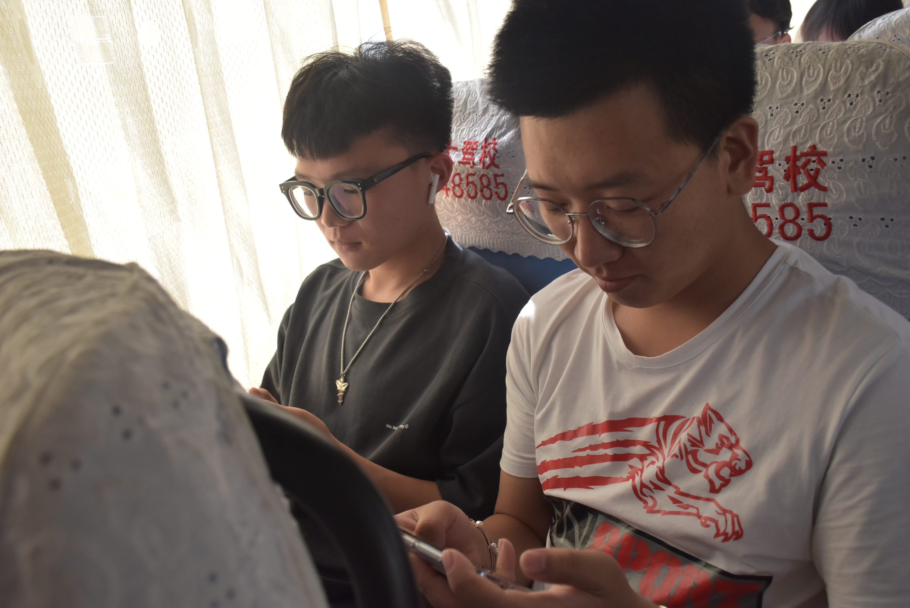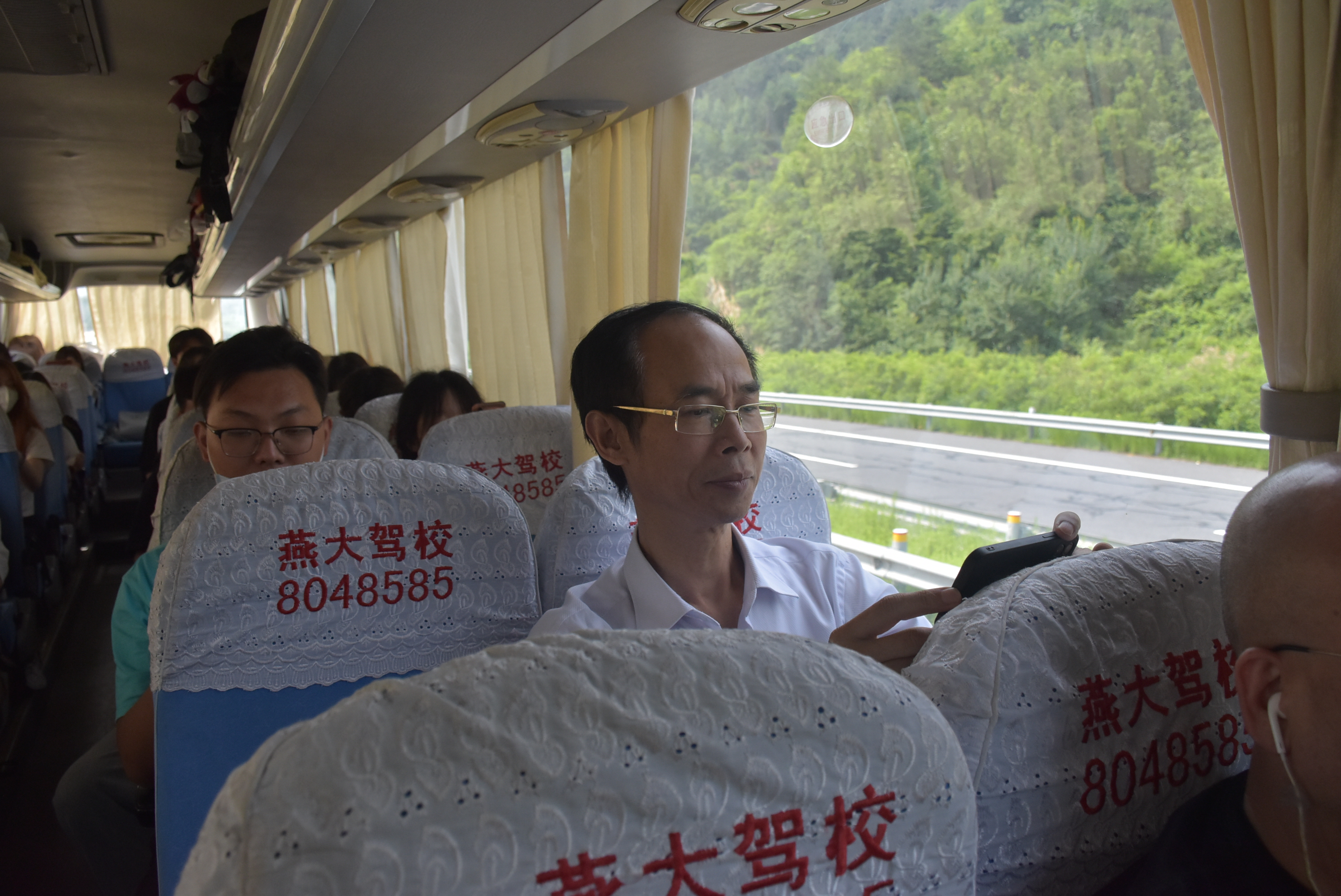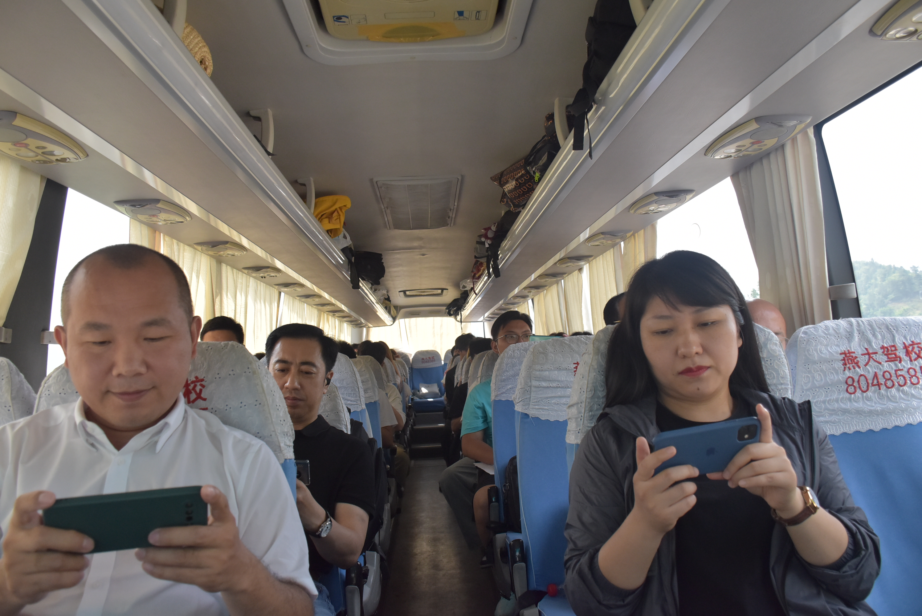 在远赴承德银里村慰问演出的大巴车上,党委书记翁钢民、党委副书记张志超带领30余名党员在线观看了庆祝中国共产党成立100周年大会直播。