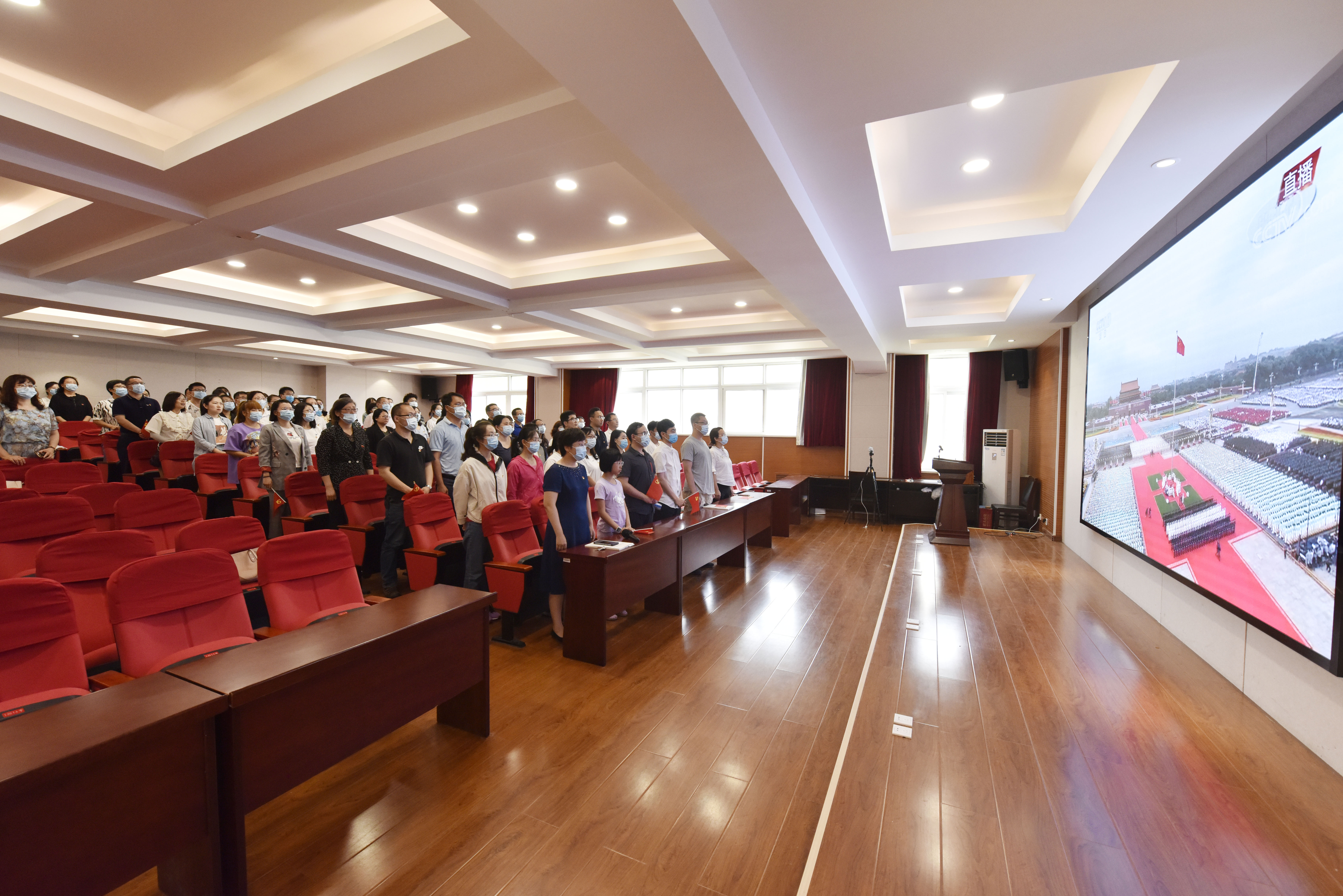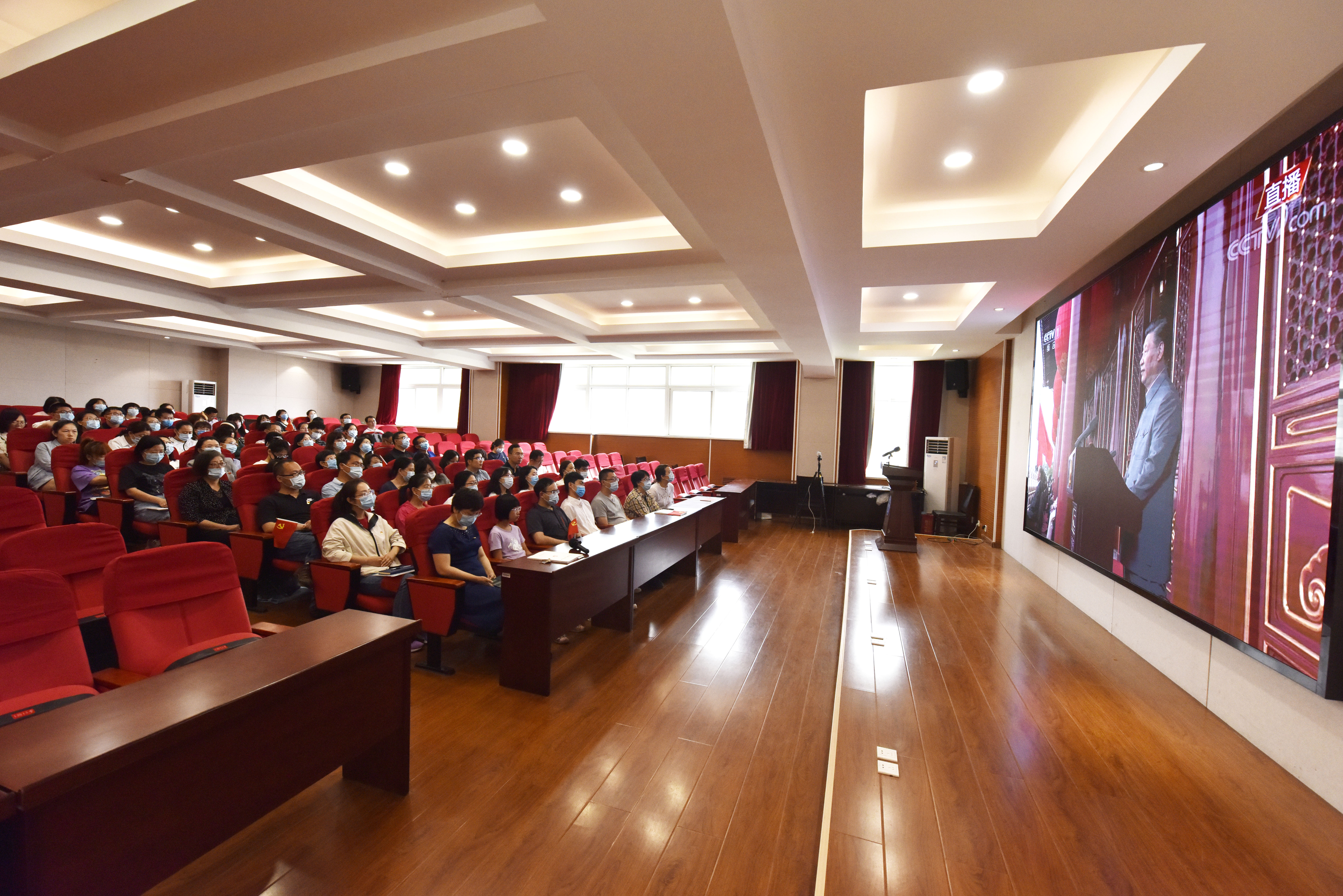 全体教职工党员以及学生党员代表参加观看。直播观看由宝威体育