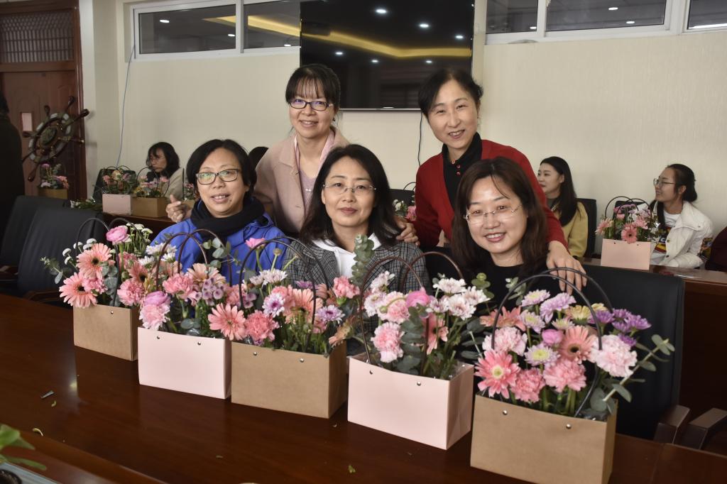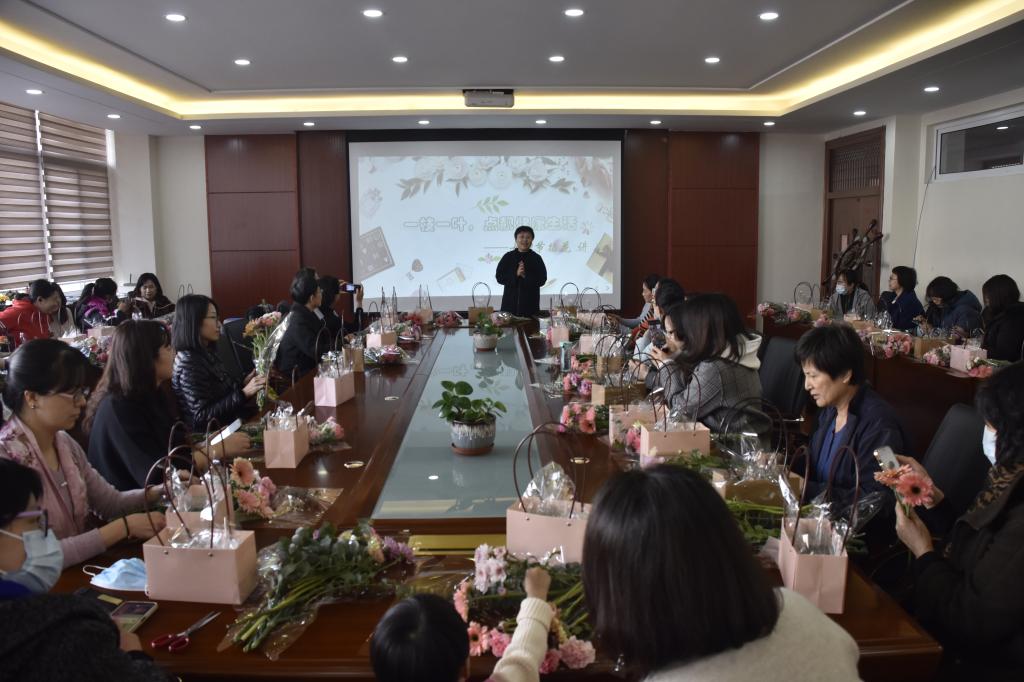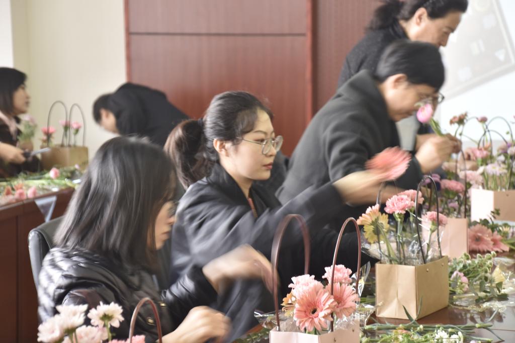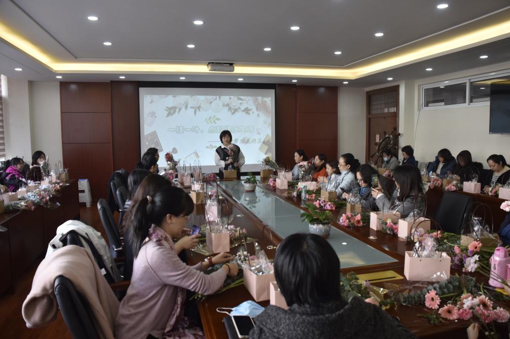 为女教职工送上节日祝福,随后开展了女神节插花讲座。