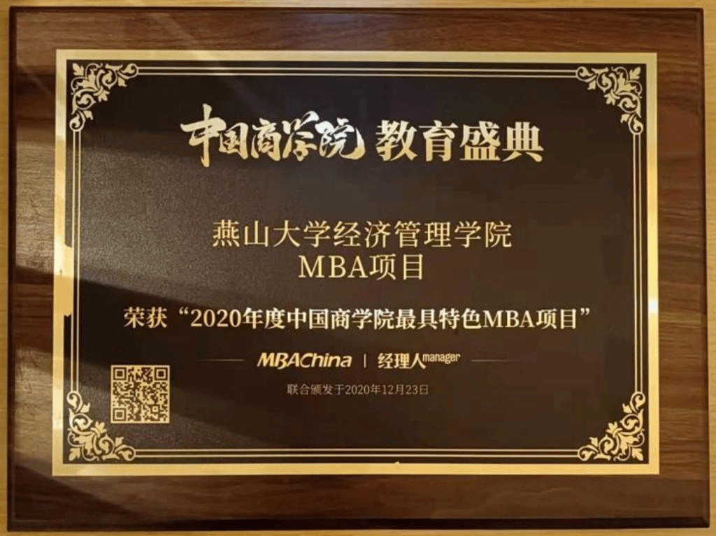 MBA联合会参加本次会议并获得2020年中国MBA“新秀100”奖。