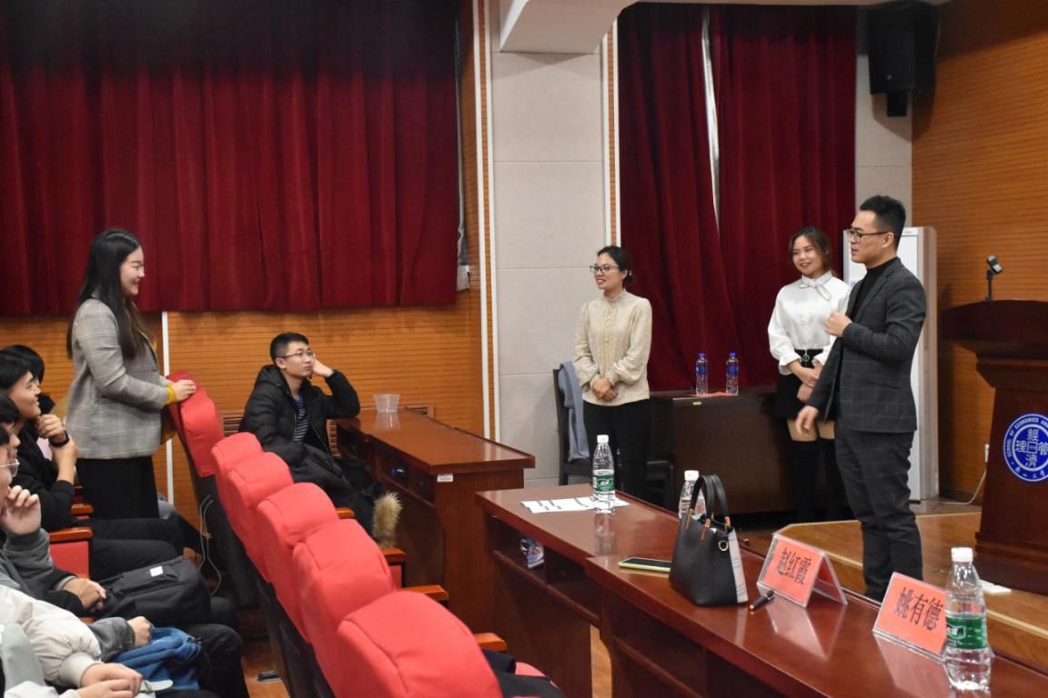 校友就业创业交流会”,分享会邀请到三位校友和校友企业代表进行交流,交流会由经管宝威体育