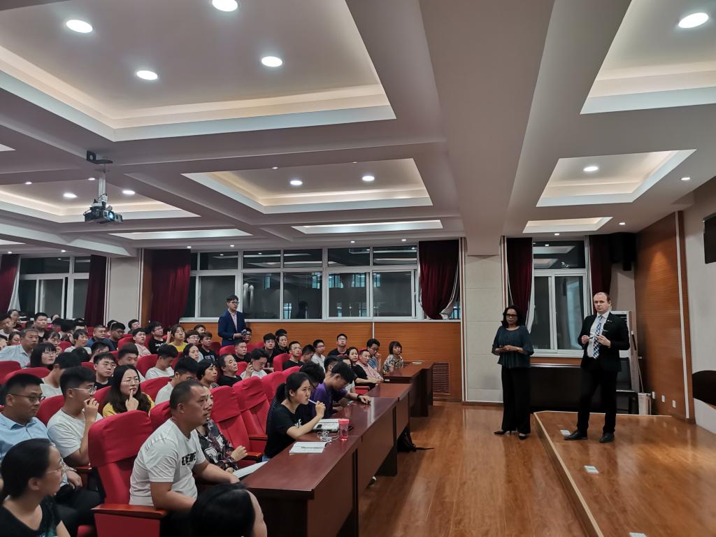 2017级卢毅恒、张昕宇两位同学分享了在科廷大学的学习经历。这两名同学因成绩优异,受中外合作办学项目基金资助,于2019年7月中旬赴科廷大学进行了一周的生活和学习。他们从科廷大学总体情况、学习体验、校园开放日及交流活动、珀斯市情市貌等进行了介绍,并就本次学习的感悟和收获与新生进行了分享。通过分享,鼓励了同学们积极学习、争取向上的劲头,也带动了同学们的学习氛围,为我校中外文化交流增添了光彩。