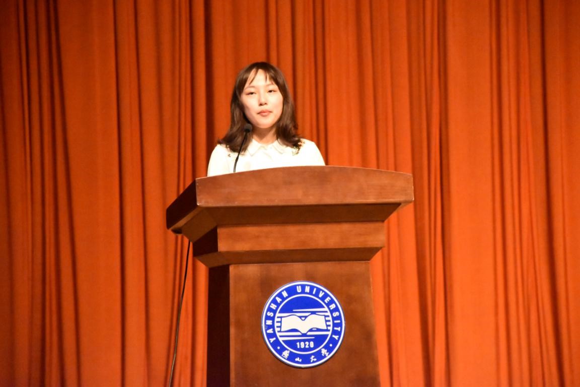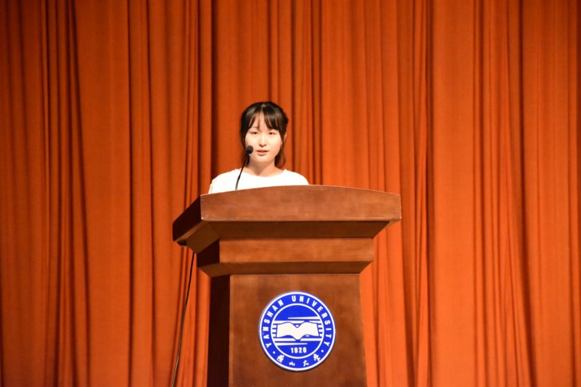 退休老教师殷际杰老先生饱含深情地讲述燕大校情校史,燕大人近百年的发展奋斗史让同学们对学校有了更深刻的认识。殷老师的话语中一字一句都满含对学校深沉的爱,新生们也被殷老的讲述感染,观众席再次爆发出热烈的掌声,为本次大会画上了一个圆满的句号。