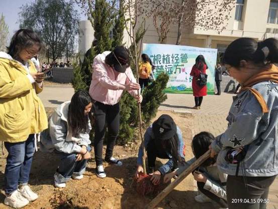 通过校友捐赠、栽植毕业林、使用创收经费购买等形式,先后栽植了泡桐树、玉兰树、银杏树、海棠树、核桃树、山楂树、樱桃树、桃树、梨树等千余株乔木植物以及月季、丁香等灌木花卉,原本空旷沉寂的经管楼周围现已绿茵遍地、花团锦簇,全体师生已然形成了崇尚自然、热爱自然、善待自然的道德风气,在用实际行动爱护着校园生态、美化着校园环境。