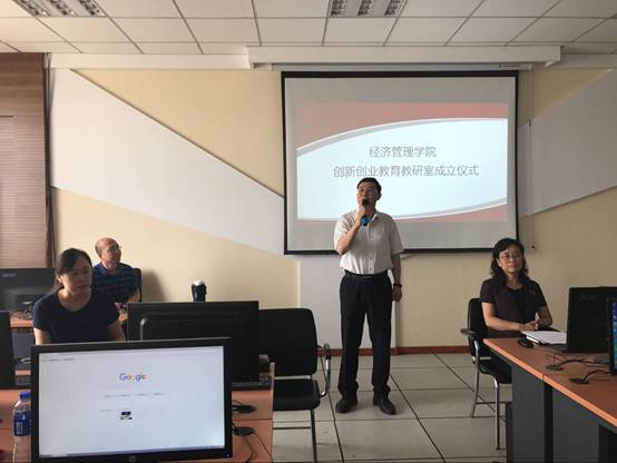 以及对学校是标志性事件,标志着我校的创新创业教育进入崭新的阶段。第二,希望教研室的成立能够更好的承接全校创新创业教育任务,形成教学、实训、科研、实践为一体的高素质团队。第三,希望教研室能够以教学为前提,科研并重。最后提出要以“高站位、国际视野”,通过5年使我校的创新创业教育在国内产生影响,10年后我们走在国内前列,最终踏踏实实走向国际。