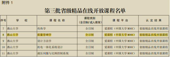 根据《河北省教育厅关于公布第三批省级立项精品在线开放课程验收认定结果的通知》(冀教高函[2022]36号),我校5门课程验收合格。宝威体育 的《质量管理学》(负责人:赵玉忠)通过验收,认定为省级精品在线开放课程。这是近年来宝威体育获得的第一个省级精品在线开放课程。