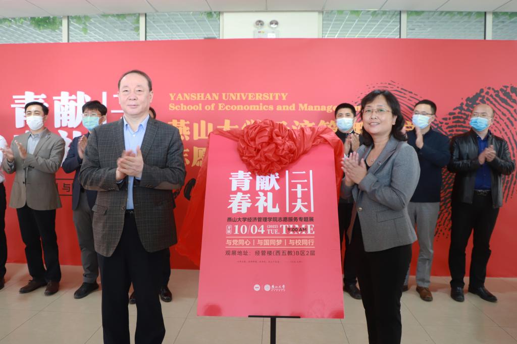 院长李春玲共同为志愿服务专题展揭幕。与会领导、来宾与师生代表一起观展。
