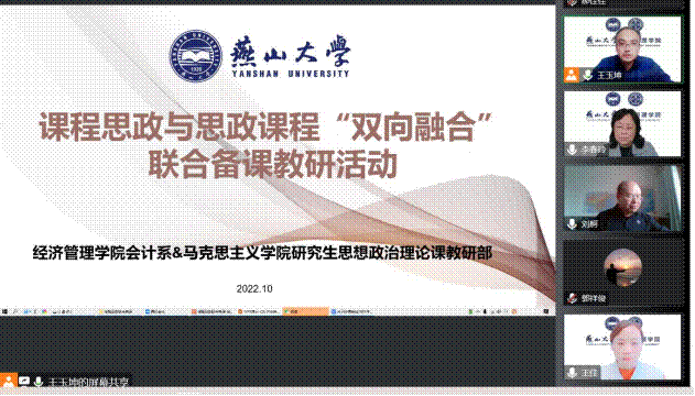 在各组的研讨备课中,基层教学组织负责人分别介绍与会教师,随后,双方教师分别介绍各自课程体系的教学目标、课程思政整体设计思路、课程思政优秀案例、教学难点等,就如何在“大思政”的育人格局下,让“课程思政+思政课程”发挥“1+1>2”的整体效用展开深入探讨,探讨课程思政在实际教学中遇到的难题和困境,迫切寻求一条有效的实践路径使“课程思政+思政课程”协同发力、协同育人,实现同频共振。
