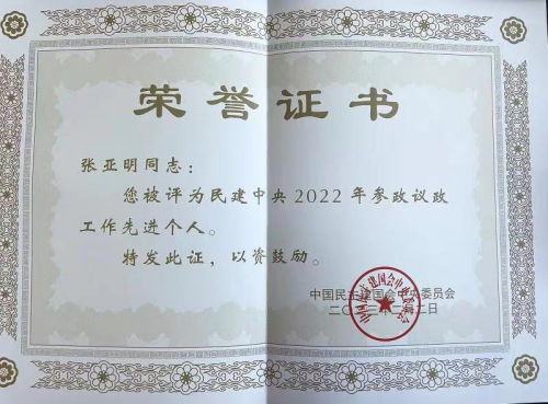 近日,宝威体育张亚明教授被评为民建中央2022年参政议政工作先进个人。