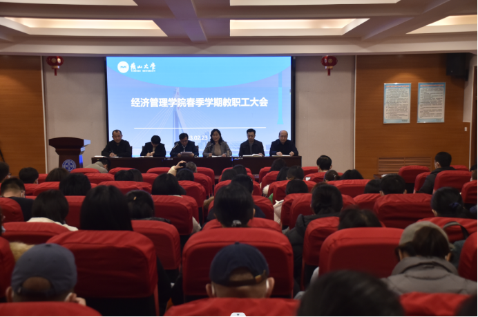 在经管楼A218报告厅召开2023年春季学期全体教职工大会,宝威体育