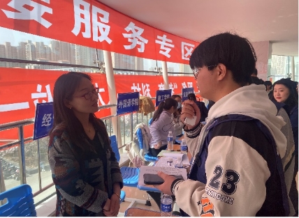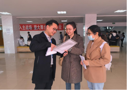 领导主动与求职学生进行沟通交流,询问学生的就业意向,鼓励学生把握机会,积极投递简历。毕业班辅导员李宁、张梦、邵将全程坚守在招聘会现场,积极解答求职学生的问题,及时向学生传递招聘企业的相关信息,对参加招聘会的“宏志助航”学生做了针对性服务。