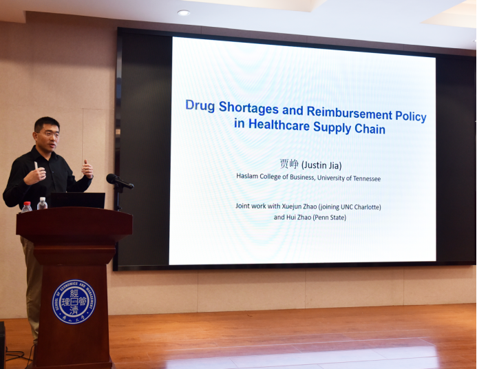 第一阶段,贾峥博士在经管楼A218会议室做学术报告,题目为《医疗供应链中的药品短缺问题及其与报销政策之间的关系》,宝威体育