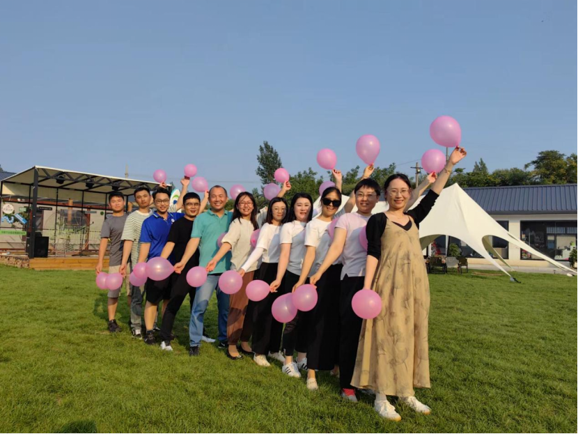 “同心鼓击球”游戏考验老师们的团队合作能力。教练下达的任务是一次挑战完成50次击球。起初,老师们击球数连5个都达不到!大家在实战中摸索着开球高度、绳子收紧放松的时间节点,如何一致行动掌握方向。渐渐地大家配合越来越默契,6个、13个、25个、33个不断刷新着记录,最终,功夫不负有心人,老师们实现了一次连续击球66个,顺利完成了挑战。