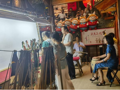 在知悉实践目的后,皮影表演艺术家程素艳也欣然答应小分队采访请求。小分队在23日对程老师进行采访后,在唐山宴里欣赏了程老师精彩的表演。观众纷纷表示:“ ‘非遗进景区’的开展,使得越来越多的非遗从田野巷陌中‘走出来’,皮影传承与发展的生命力就蕴藏在人们的看见、了解与热爱中。深刻体会到了让非遗‘见人见物见生活’,才能更好促进经济社会发展,不断惠益人民福祉。”