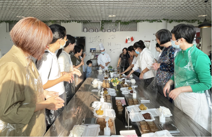活动伊始,老师们看着制作月饼的模具、面粉、馅料等工具和材料,纷纷摩拳擦掌、跃跃欲试,戴上手套后俨然一副专业面点师的样子。在活动开始之后,他们就迫不及待地拿起了原材料和工具,称重、压皮、包馅、捏皮、最后放进各种花样的模具之中按压定型。在月饼制作的过程中,大家互相交流经验,分享技巧,增进了彼此的感情。大家都放下平日的繁忙,感受节日气息,分工合作,互相帮助,一边交流着自己家乡过中秋节时的习俗和活动,一边享受着亲情与友情的温暖以及团圆的喜悦。