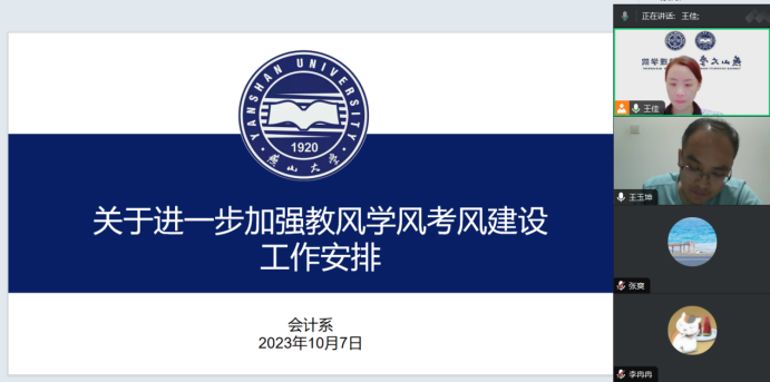2023年10月7日,会计系召开“三风建设”专题会议,对前一段“三风建设”工作开展情况进行总结,部署“三风建设”下一步的工作。