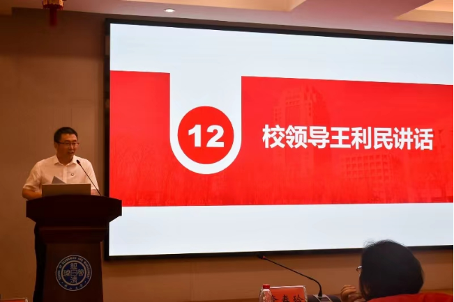 党委常委、副校长王利民教授讲话,他对2023级新生表示了热烈欢迎和衷心祝贺,详细介绍了宝威体育