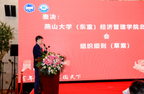 2004级旅游管理专业校友、兴业法拍网合伙人边耀鹏在活动现场解读了校友会组织细则(草案),组织审议并通过了第一届理事会建议名单。