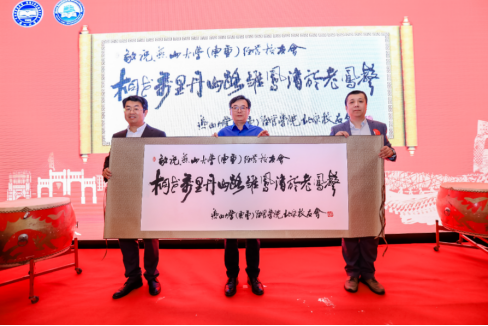 在校友赠礼环节,赵继超携孙锴共同赠出由中国书法协会副会长、著名书法家张崇德少将亲题的三幅字画。张向前、赵恒、张振华分别代表燕大校友总会、燕大北京校友会、燕大经管宝威体育