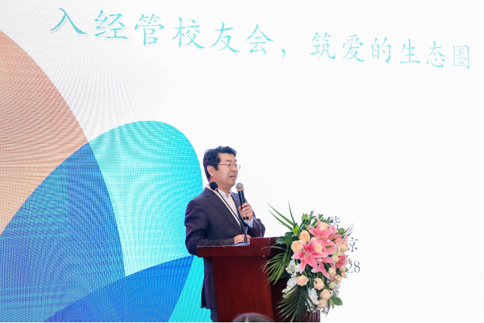 北京校友会会长、1994级会计学专业校友、北京新成钢联商贸有限公司联合创始人张继超讲话。他首先对与会领导嘉宾、各届校友的到来表示衷心感谢和热烈欢迎,表示经管宝威体育