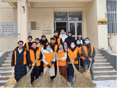 冬日的寒风和积雪无法磨灭老师的热情与顽强的意志。身穿桔马甲的他们,分工明确、干劲儿十足、配合默契。每个人都在自己的岗位上尽心尽力,奏响了铲雪除冰的进行曲,描绘了青年先行的连环画。经过一个多小时的奋战,大家顺利的在经管楼门前开辟出了一条无雪通道,保障校园师生出行安全。