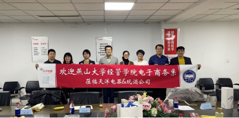 在天洋电器有限公司总经理刘建双、总经理助理严彬彬、人力总监王永红、综合管理部总监郭秀娟、电商部总监刘野及行政高级经理左成陪同下,一起参观了天洋电器1号店,了解到天洋电器有限公司根植秦皇岛近20年,作为当地知名企业,涉足专业家电零售实体运营、电器及建筑智能化工程、白酒营销业务的综合性企业,拥有5家实体门店和专业物流配送团队,3个独立业务中心,年销售额近6亿元。