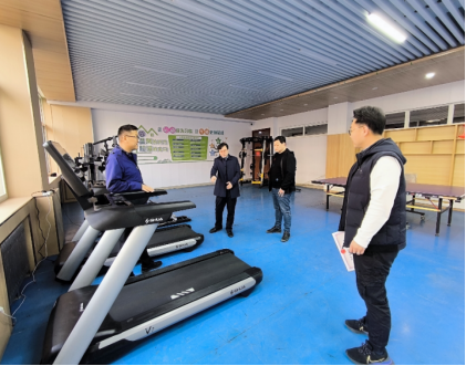 工会活动室,张振华检查了健身设备用电、卫生清洁和日常养护等工作,强调在确保用电安全的前提下,为老师们提供良好的健身环境。