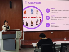 高梦雪同学,考取了河北省定向选调生。她详细介绍了考公动机、公务员考试的流程、考试内容和备考策略,强调综合素质和应试技巧在考公中的重要性。她的分享让在场的同学们对公务员考试有了更加清晰的认识和了解。