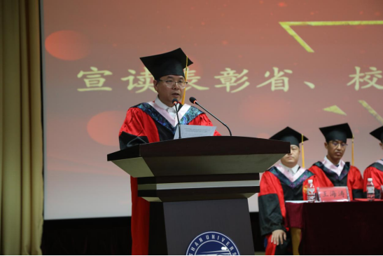 张玉强代表校友致辞。他结合自己的经历,分享了成功的经验和感悟,鼓励毕业生们要坚定信念,勇于追求梦想,不断努力创新。
