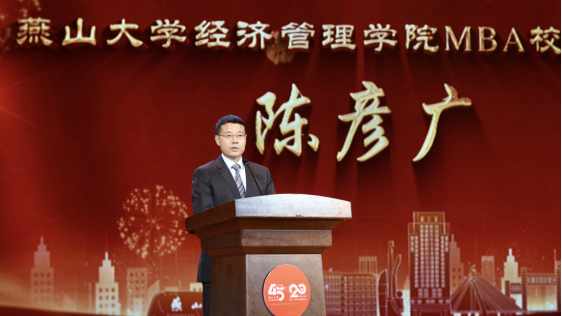 校友代表、秦皇岛艾科晟科技有限公司董事长陈彦广代表校友致辞。他深情回顾了在母校求学成长和创新创业的历程,表达了心中对燕大的感激和眷恋。他表示母校老师的关心和校友的厚爱始终陪伴身边,燕大人艰苦奋斗、严谨治学、求实创新的精神早已融入每个学子的血液。他代表广大校友,祝愿母校在未来岁月中,不断创造新的业绩。