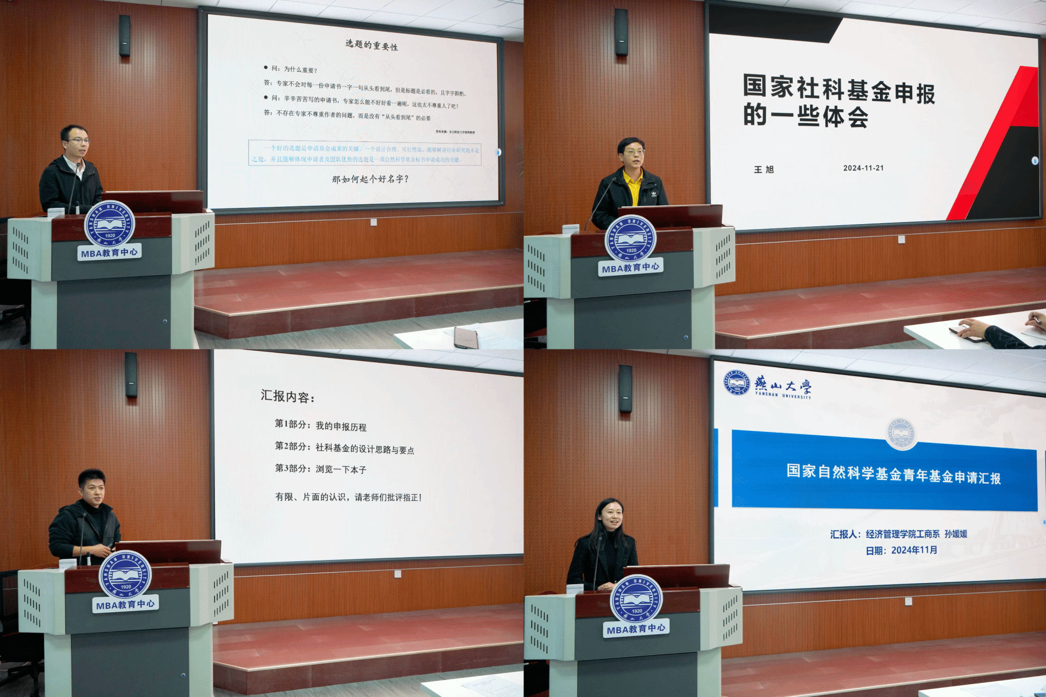 李冉冉、胡玉才、王旭、孙媛媛等四位教师也在会上做了经验分享。他们分别从不同角度介绍了自己在国家基金申报过程中的心得体会,包括如何选题、如何撰写申报书、如何准备答辩等。这些分享不仅丰富了会议内容,也为与会教师提供了更多的参考和启示。