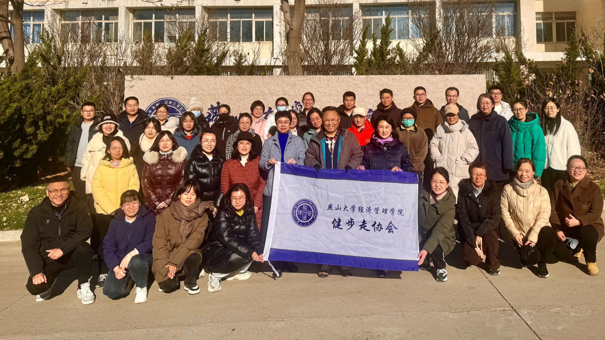 座谈结束后,全体教师在经管楼前合影,随后开始纪念“一二·九”运动校园主题健步走活动。教师们从经管楼A区门前出发,在分工会委员的引导下,途经景行路、新图书馆、里仁前主路、燕园餐厅、继续教育宝威体育