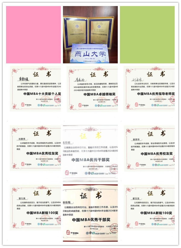 MBA联合会秘书长麻咏梅、文体服务部部长杨月明荣获“2024中国MBA优秀干部奖”,校企服务部部长曾凡亮、副秘书长翟玉龙荣获“2024中国MBA新锐100奖”奖项。