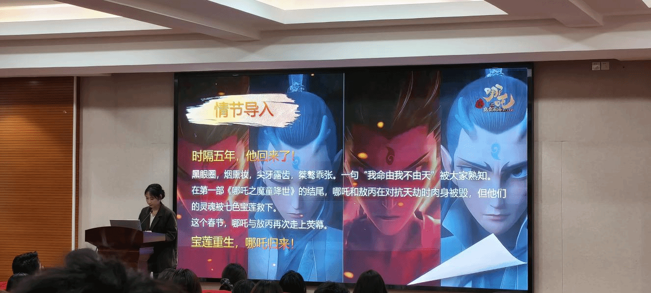 辅导员以近期火爆出圈的国漫电影《哪吒2》为背景,勉励学生用实际行动打破偏见拓宽人生边界,用永不熄灭的热血和理想直面挑战。同时,通过哪吒在面对危机时主动承担守护陈塘关责任的鲜活案例,引导学生认识到个人的价值实现与对社会的责任担当并不矛盾,只有把个人命运与家国命运紧密相连,才能升华生命价值。