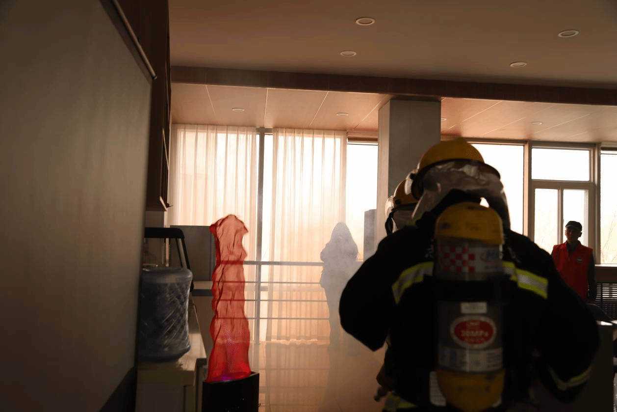 上午10:00,李春玲宣布灭火救援和应急疏散演练正式开始。