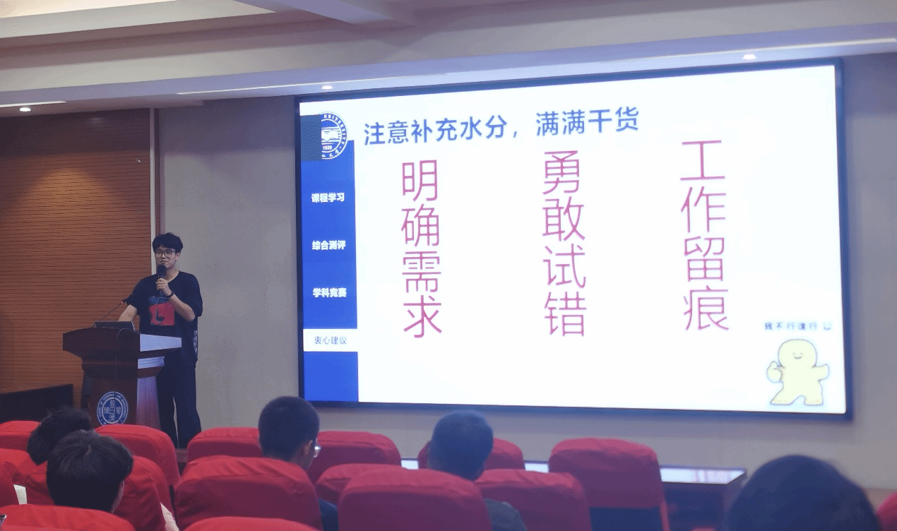 在师兄师姐说环节中。22级系成绩排名第一的刘博同学分享了学习经验,并给出了“明确需求、敢于试错、工作留痕”的建议。随后,21级毕业生杨茗钧(保研至东北大学)、20级毕业生张雅慧(保研至东北大学秦皇岛分校)分别结合自身经历,详细介绍了课程学习、竞赛参与及夏令营准备等方面的宝贵经验。该环节最后,在环节尾声,已顺利就业的20级毕业生张博傲(就职于徐工集团)与殷佳晴(就职于华为),则聚焦职场视角,分享了工业工程知识在实际工作中的应用场景与求职心得。他们同时叮嘱学弟学妹们,务必明确自身目标、潜心钻研学业,唯有如此,才能在未来的职业舞台上绽放光彩。