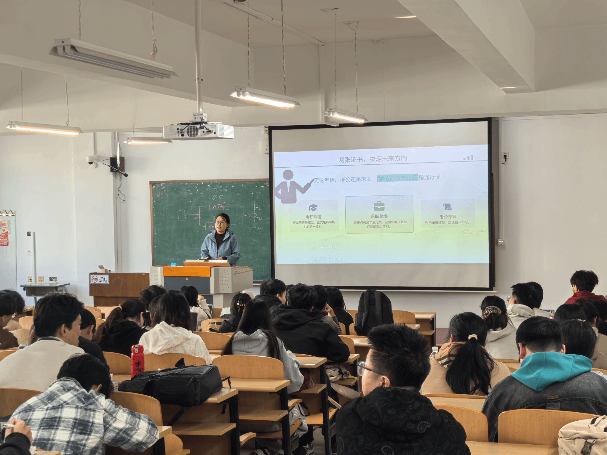 在时间安排上,张旭老师对开题报告、中期检查、论文定稿与答辩等关键节点进行了明确说明,并就考研与非考研学生的不同进度提出了合理建议,鼓励大家提前规划、循序推进,确保各阶段任务顺利完成。最后,她鼓励同学们以积极的态度投入论文研究。