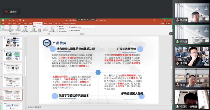 2022年3月30日,经过初赛的激烈角逐,产生特等奖7项,一等奖13项,二等奖27项,三等奖30项,创新、创意及创业奖各一项。最终共20支参赛团队进入决赛答辩环节。由于疫情形势多变,本次校赛决赛安排为线上形式。决赛环节将入围项目分为A、B两组,两组使用腾讯会议同时进行。为确保决赛的公平、客观,开启4个会议间,确保每支参赛团队答辩时其他团队均在候场会议间等候。
