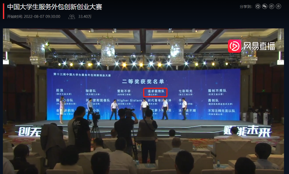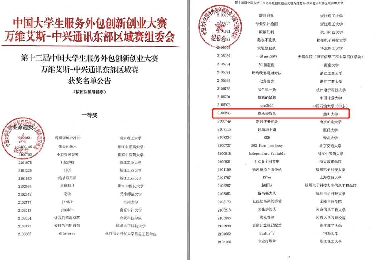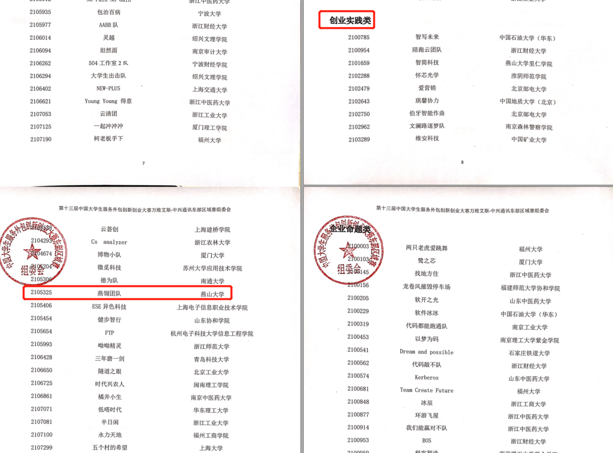 200多位同学的参与,共收集了全校12个企业命题类项目和2个创业实践类项目。在5月28日举办的第十三届中国大学生服务外包创新创业大赛万维艾斯-中兴通讯东部区域赛中, “追求极致队”获得企业命题类一等奖,“燕翎团队”获得创业实践类二等奖。另有我校参赛团队“就是我们队”、“创新青春小队”、“分布式学习”获得企业命题类三等奖,“御安科技”获得创业实践类三等奖。