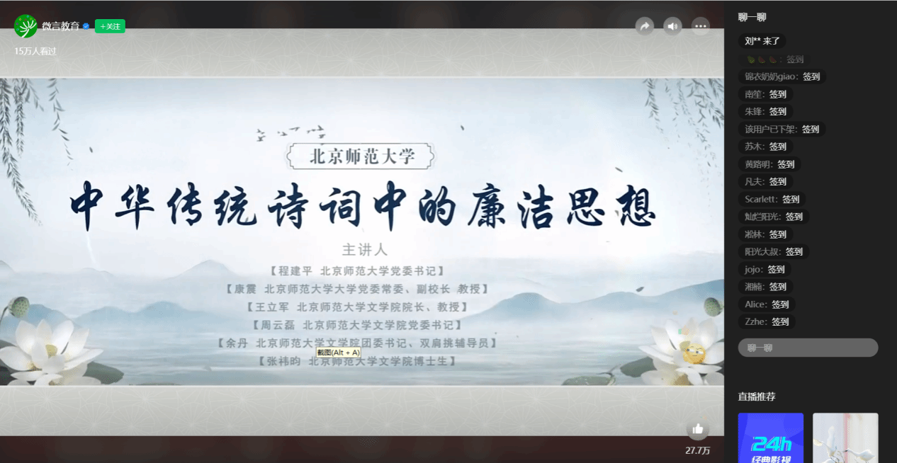 微党课第一期《中华传统廉洁文化》,由中国人民大学、北京师范大学、华东政法大学3所高校主要领导、知名学者、教师及学生党员代表共同讲授。课程围绕中华文化遗产中的廉洁与纪律观念,深入探索中国历史上的反腐历程,展现古代廉政文化的精髓,通过分析历史上反腐败斗争的经验与教训,旨在借鉴历史智慧以促进当代反腐倡廉制度的建设。通过学习,党员深受启发,与会党员承诺将努力践行廉洁的价值观,积极传播廉洁文化,坚持学思用贯通、知信行统一,以理论上的坚定保证用权上的清醒,不断增强政治定力、拒腐定力,为社会的和谐发展做出自己的应有贡献。