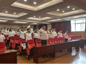 大会最后一项,全体毕业生党员重温入党誓词,由工业工程专业党员苏彬领誓。全体党员右手握拳,庄严宣誓,全体毕业生党员牢记入党初心,坚定理想信念,决心用实际行动践行对党的铮铮誓言。
