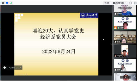 2022年6月24日,经济系党支部党员在线举行了2022年第2次党员大会。会上,支部书记徐蕾传达了近期宝威体育 党委的一系列重要指示,党员们共同学习了党史,大家还对支部“奋进新时代、献礼二十大”学习教育实践活动进行了讨论,制定了初步的活动计划。党员们怀着激动的心情,纷纷表示要认真贯彻执行上级的指示,学好党史,积极参加党组织的活动,用实际行动来迎接二十大的召开。