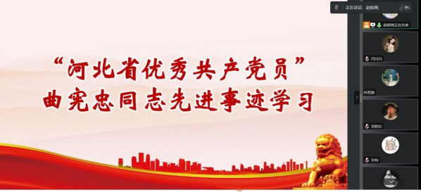 本科生第七党支部开展“河北省优秀共产党员”曲宪忠同志先进事迹集体学习。本次学习通过腾讯会议进行,由支部党员赵晗琳同志主讲。