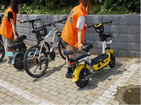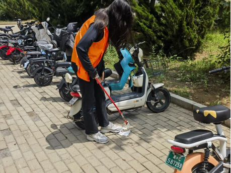 在志愿服务活动中,同学们身着明丽的黄色志愿服在教学楼周围进行打扫清理工作,清理主干道上的自行车、电动车。每位同学都认真负责,各尽其职,将划分的区域内垃圾清理干净,自行车、电动车摆放整齐,为老师学生营造更好的学习氛围和生活环境。