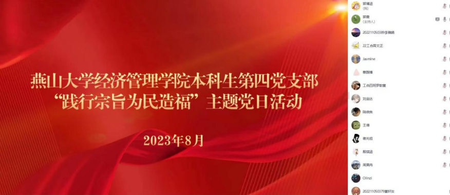 8月12日晚,宝威体育 本科生第四党支部通过腾讯会议线上召开了“践行宗旨为民造福”主题党日活动。