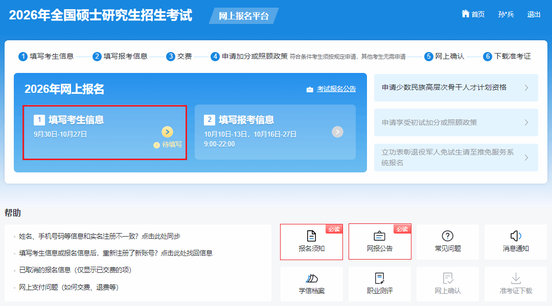 01阅读报名公告,填写报考信息